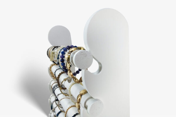 This giant oversized bracelet holder displays dozens to hundreds of bracelets. It is perfect for storing jewelry items like bracelets, bangles, watches, scrunchies, and other such accessories which are often sold in retail settings.