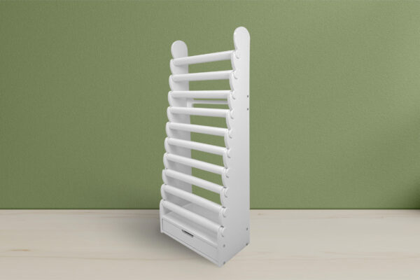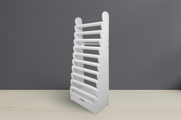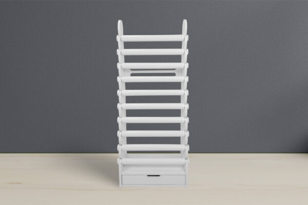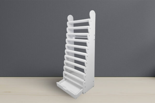 Our Giant Bracelet Display stands tall at over 43″ and includes 10 – 18″ wide removable wooden bars to display your bracelets, bangles, watches and scrunchies. .Our 10 level light wood bracelet holder provides a one-of-a-kind bangles and bracelet stand that is ideal for storing and organizing hundreds of bracelets and bangles or any other jewelry items. It includes a practical built-in drawer at the bottom for additional storage. This multi-tier jewelry holder is a perfect jewelry display for retail or home use. It is undoubtedly one of the most unique and possibly the only 10 tier rack in America, where all the others settle for a 5 tiers bracelet display for storage. It is made of the highest quality of sturdy wood from New Zealand and is 9.85 in length, 18 inches wide and 43.5 inches in height. It is perfect for bracelet and bangles storage and serves as an organizer for your jewelry. It is a perfect bracelet and bangles display for retail use in jewelry stores, clothing stores, festival vendors, trade shows and more. .